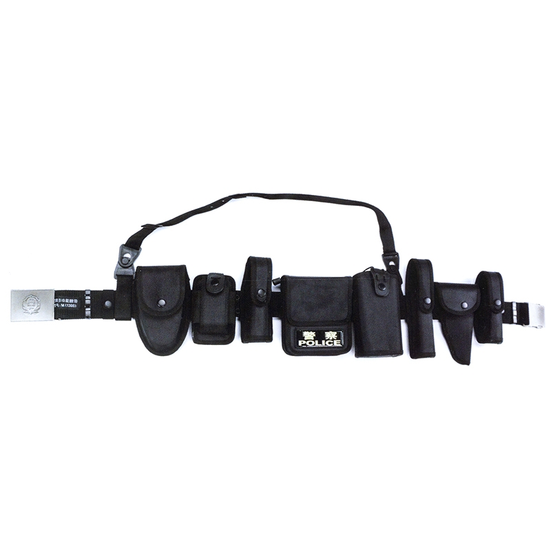 配裝:手銬套、對(duì)講機(jī)套、強(qiáng)光手電套、警用工作包、警用水壺套、警棍套、手槍套、催淚噴射器套、斜跨帶。警用多功能皮質(zhì)腰帶采用牛皮移膜革制成。警用多功能尼龍腰帶采用阻燃牛津布制成。